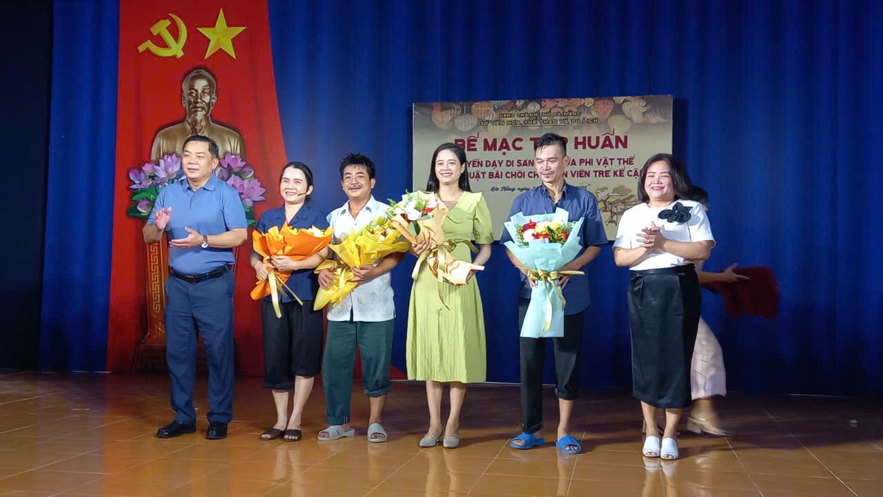 Lãnh đạo Sở VHTTDL và Nhà hát Nghệ thuật truyền thống tặng hoa các diễn viên lớp tập huấn tháng 10/2025