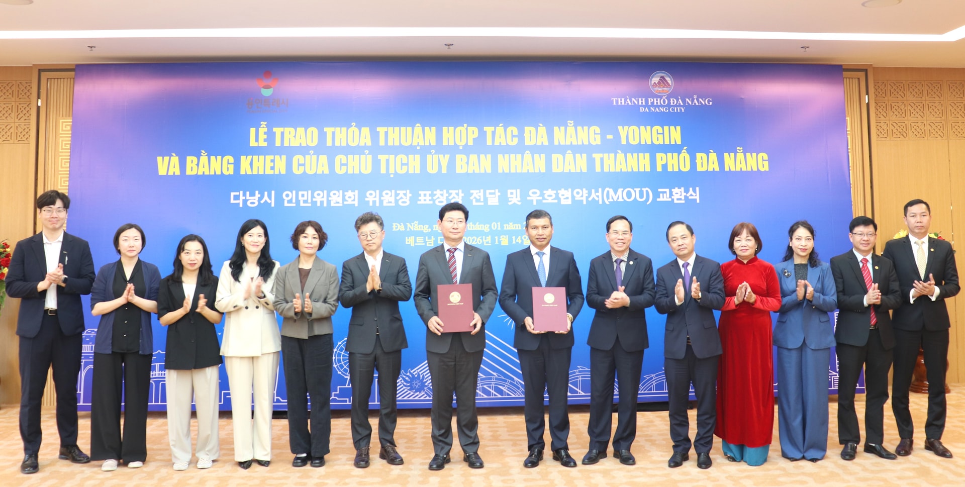 Dịp này, hai bên ký và trao thỏa thuận thiết lập quan hệ hợp tác hữu nghị thành phố Đà Nẵng và thành phố Yongin.