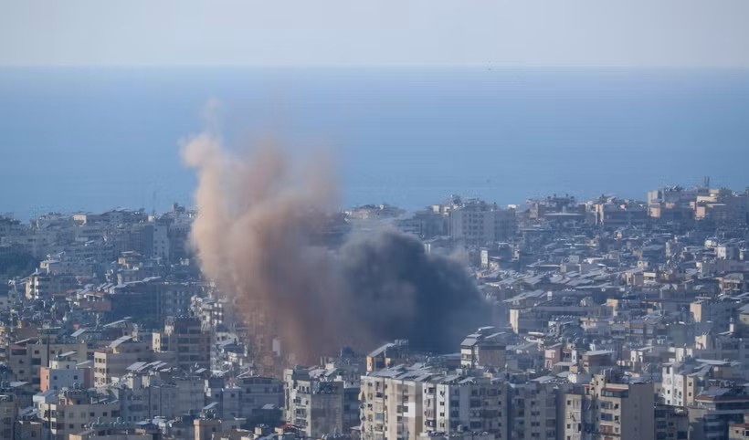 Khói bốc lên từ địa điểm ở ngoại ô Beirut, Liban sau cuộc không kích của Israel.