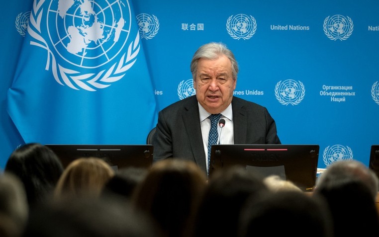 Tổng Thư ký Liên hợp quốc Antonio Guterres phát biểu tại cuộc họp báo ở New York, Mỹ.