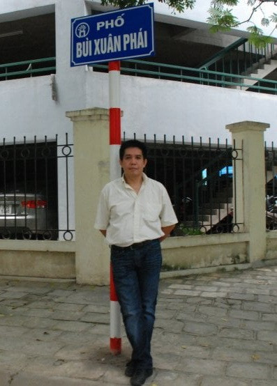 BS Gérard Chapuis tại một góc đường mang tên Bùi Xuân Phái ở Hà Nội