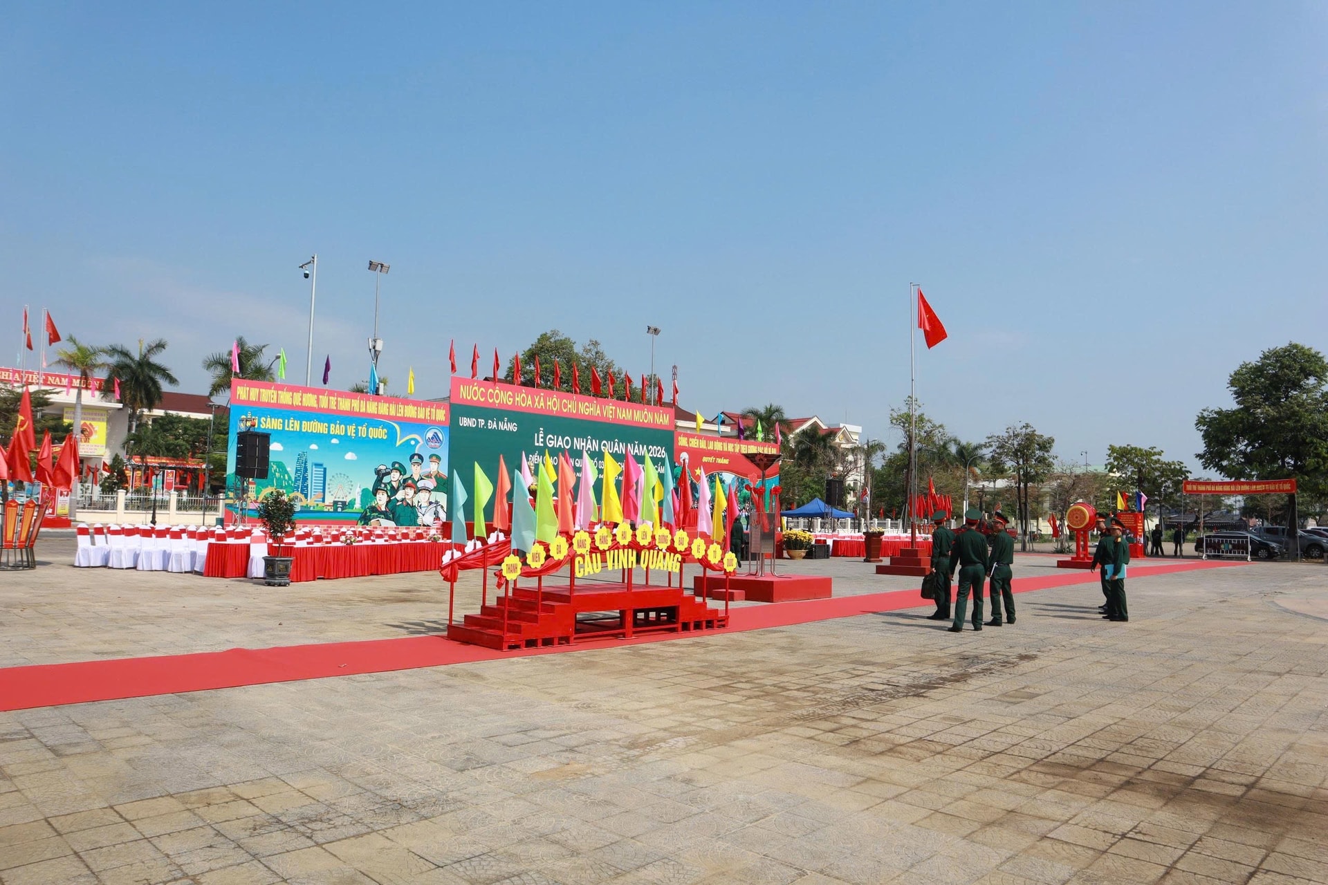 Các điểm giao, nhận quân thuộc Ban Chỉ huy Phòng thủ khu vực 1 - Cẩm Lệ được trang trí trang nghiêm. Ảnh: MINH THY