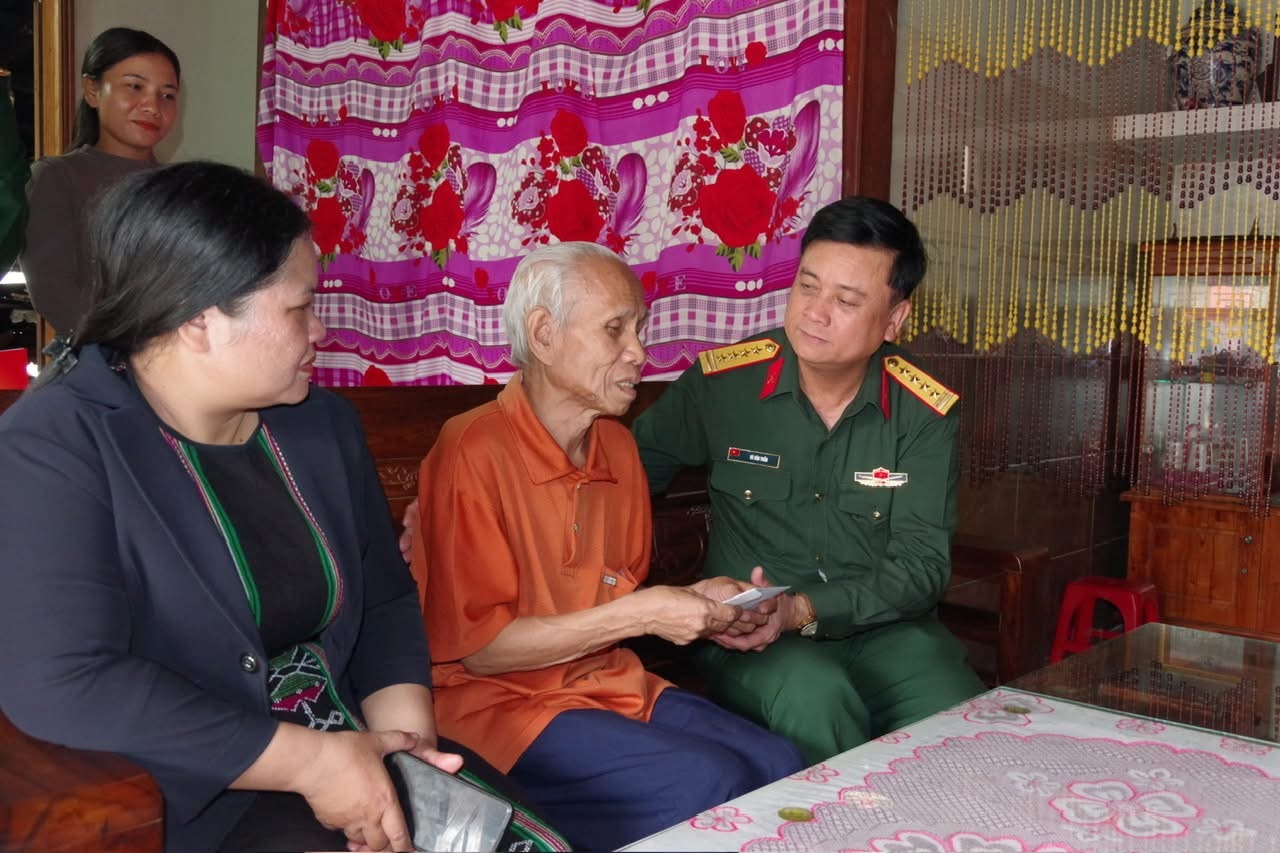 Đại tá Võ Văn Tuấn đến thăm, tặng quà các gia đình chính sách. Ảnh: MINH THY