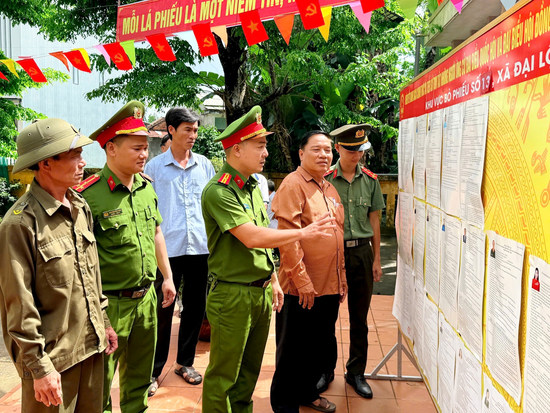Công an xã bố trí lực lượng hướng dẫn tại các điểm bầu cử. Đồng thời, phối hợp Ban Chỉ huy Quân sự xã tổ chức tuần tra hàng đêm, kiểm tra các khu vực bỏ phiếu để nắm bắt tình hình, chủ động phòng ngừa các hành vi gây rối, phá hoại.