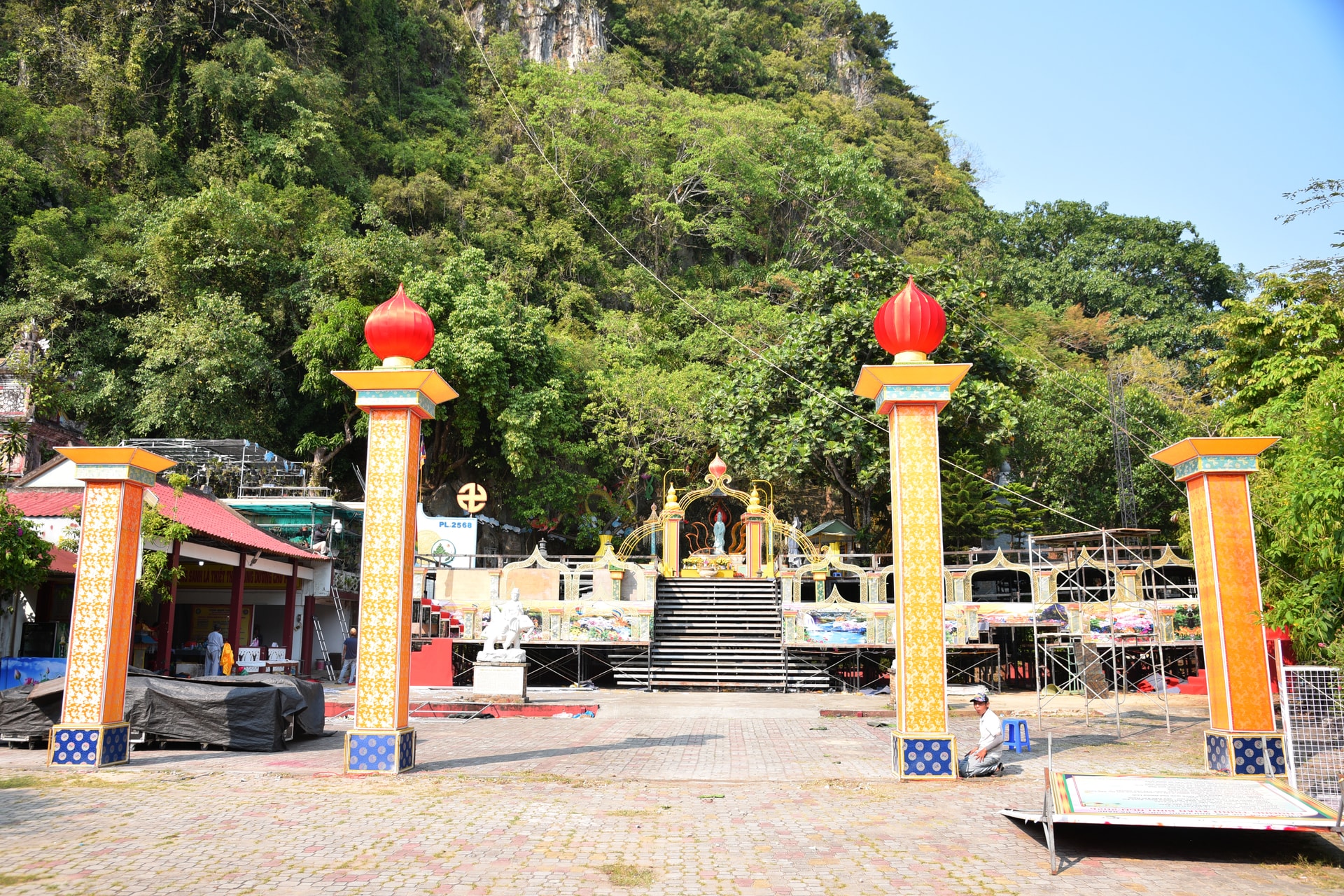 Sân khấu Lễ vía Đức Bồ tát Quán Thế Âm cơ bản hoàn thành các hạng mục chính. Ảnh: DŨNG CƯỜNG