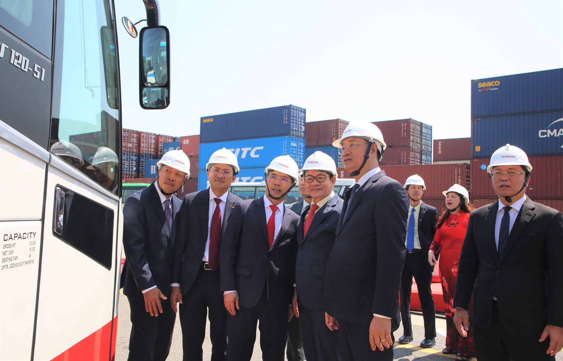 Lãnh đạo thành phố tham quan hệ thống xe bus tại Cảng quốc tế Chu Lai.