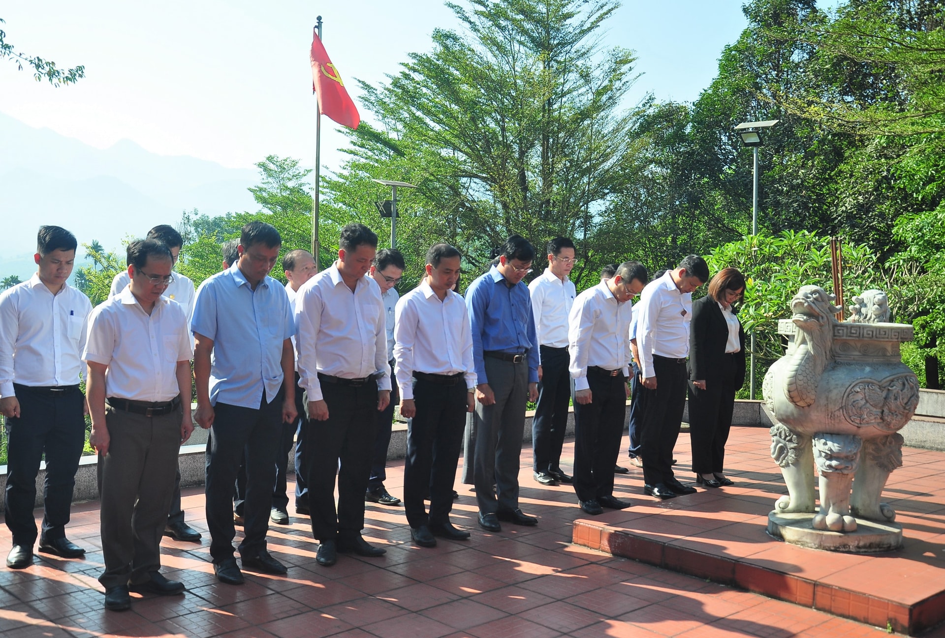 Trước anh linh Chủ tịch Hồ Chí Minh và các anh hùng liệt sĩ, đoàn công tác dành phút mặc niệm, thành kính dâng hoa, dâng hương, bày tỏ lòng tri ân sâu sắc trước sự hy sinh cao cả của các thế hệ đi trước vì sự nghiệp giải phóng dân tộc, giành lại độc lập, tự do cho Tổ quốc.