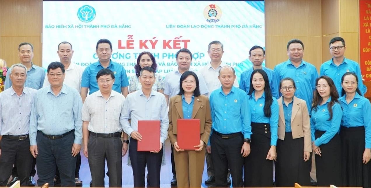 Lãnh đạo BHXH thành phố và Liên đoàn Lao động thành phố ký kết chương trình phối hợp vì quyền và lợi ích của người lao động.