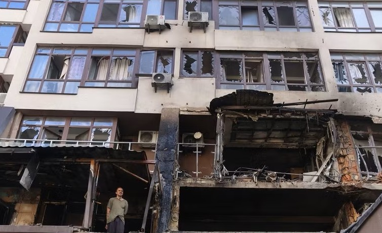 Một tòa nhà bị hư hỏng tại quận Shevchenkivskyi ở thủ đô Kiev, Ukraine